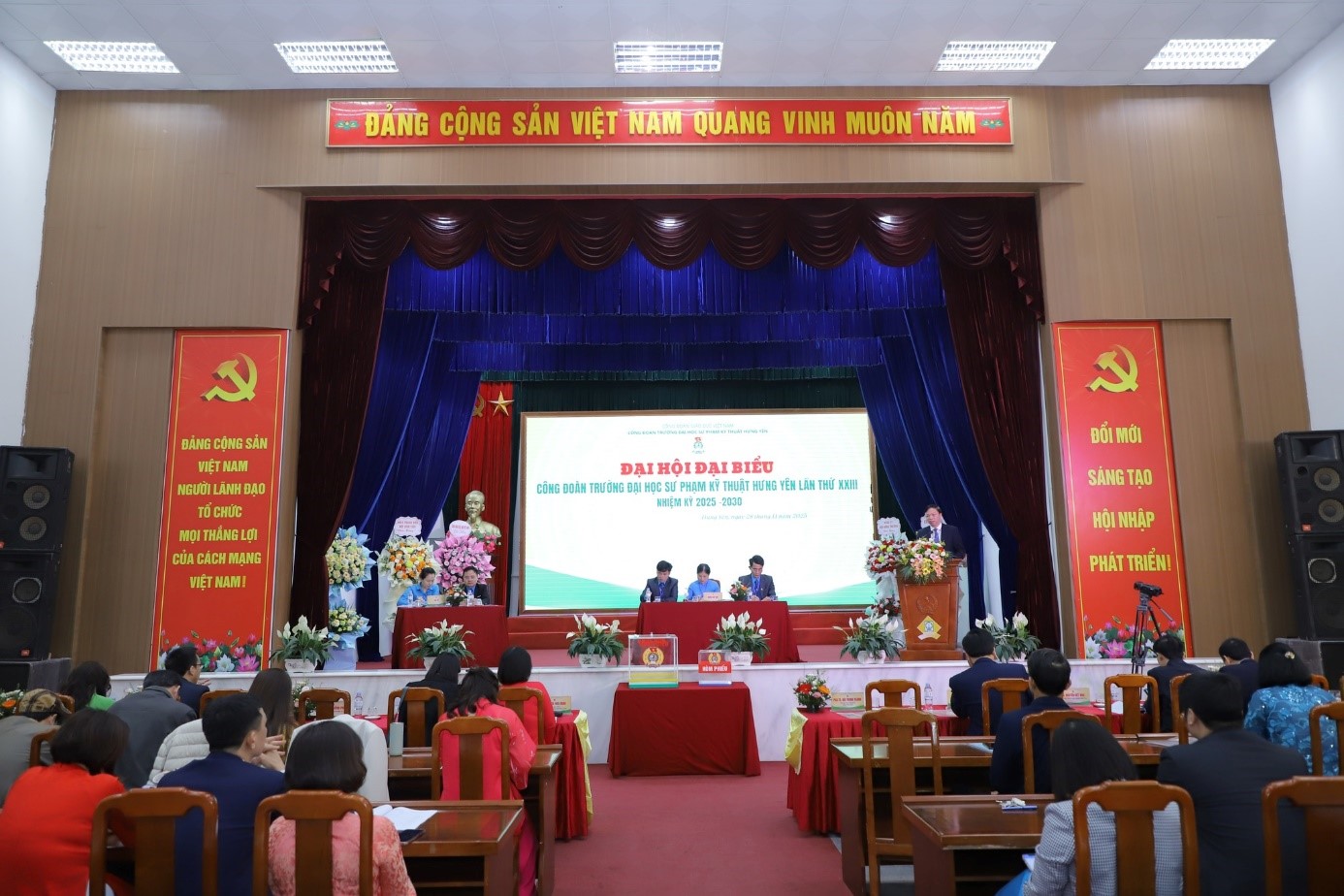 Sáng ngày 28/11/2025, thực hiện Điều lệ Công đoàn và sự chỉ đạo của Đảng ủy, Ban Giám hiệu Nhà trường, Công đoàn trường Đại học Sư phạm Kỹ thuật (SPKT) Hưng Yên đã long trọng tổ chức Đại hội lần thứ XXIII, nhiệm kỳ 2025 - 2030. Đây là sự kiện chính trị quan trọng nhằm tổng kết, đánh giá hoạt động nhiệm kỳ 2023-2025, đồng thời xác định mục tiêu và giải pháp cho giai đoạn mới.