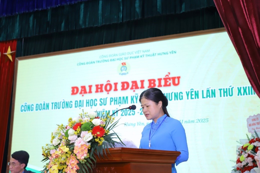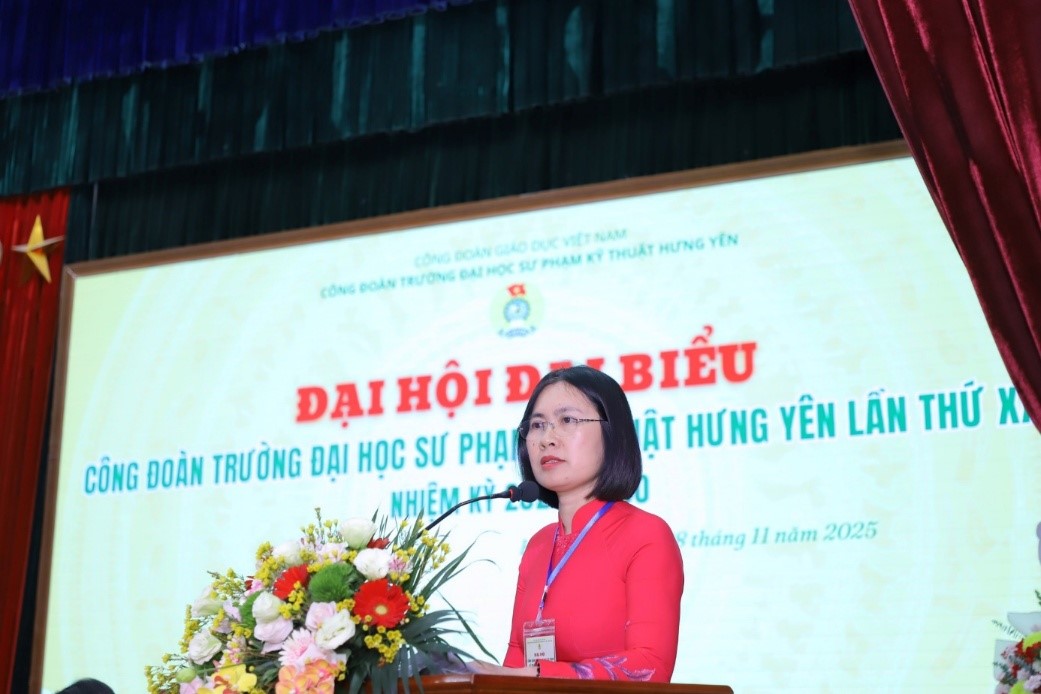 Tại Đại hội, đồng chí Lê Thị Mai Oanh – Phó Chủ tịch Công đoàn Giáo dục Việt Nam đã ghi nhận và biểu dương những thành tích nổi bật của Công đoàn Trường trong công tác chăm lo đời sống, phát động phong trào thi đua và hỗ trợ chuyên môn. Đồng thời, đồng chí đề nghị Công đoàn trường cần tiếp tục đổi mới phương thức hoạt động, nâng cao hơn nữa vai trò đại diện và đồng hành cùng sự phát triển của Nhà trường.