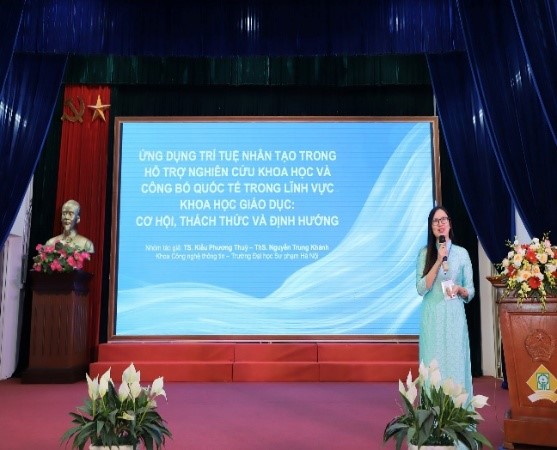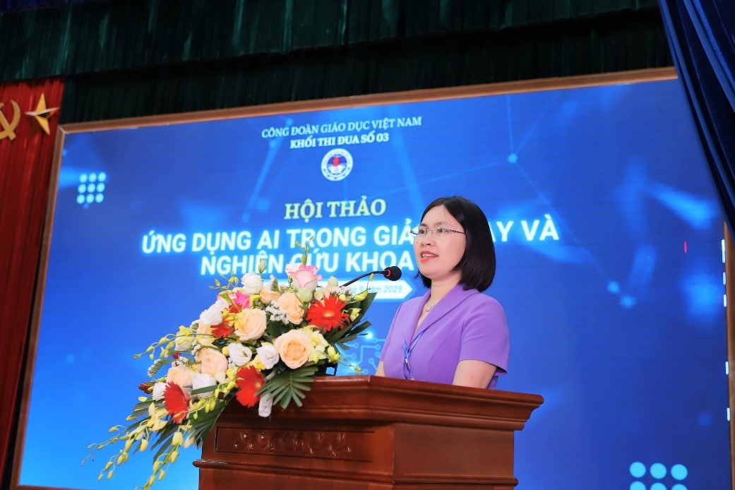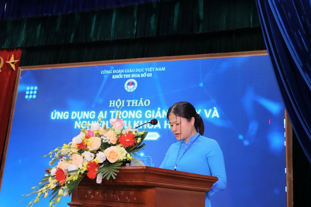 Tại Hội thảo, Đồng chí Lê Thị Mai Oanh, Phó chủ tịch Công đoàn Giáo dục Việt Nam khẳng định: Trong bối cảnh Cách mạng công nghiệp lần thứ tư diễn ra mạnh mẽ, trí tuệ nhân tạo đang trở thành công cụ đột phá, tác động sâu rộng đến giáo dục và nghiên cứu khoa học. Việc tổ chức Hội thảo hôm nay là hoạt động rất ý nghĩa, góp phần khẳng định tinh thần chủ động, sáng tạo của Khối thi đua số 03 trong việc bắt nhịp với xu thế thời đại.